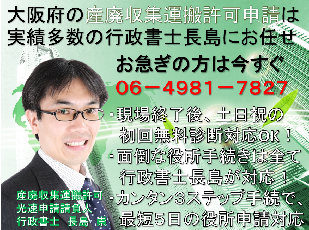 大阪府の産廃収集運搬業許可申請ならお任せ下さい!